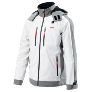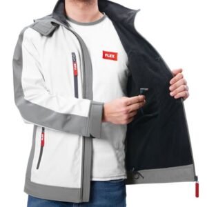 812 leiJacheta încălzită electric Flex 511943, TJ White 10.8/18.0 XL Men este un echipament profesional pentru bărbați, compatibil cu acumulatori Li-Ion de 10.8 și 18 V, oferind patru niveluri de încălzire și trei zone de încălzire, realizată din material respirabil, rezistent la apă și vânt, cu interior fleece, ideală pentru activități
