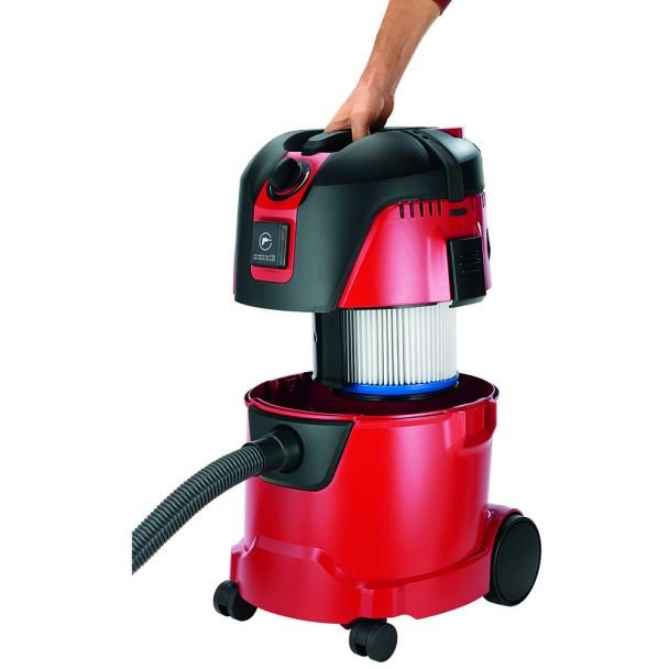 Acest aspirator este echipat cu un motor puternic de 1200 W și funcționează la o tensiune de alimentare de 230 V/50 Hz. Dispune de o metodă brevetată de curățare a filtrului printr-un buton situat pe mâner, iar filtrul plat pliabil optimizează capacitatea rezervorului. Pentru aspirarea umedă, are control electronic al nivelului de umplere a lichidului, iar oprirea automată cu întârziere de 15 secunde previne suprasolicitarea motorului. Aspiratorul este dotat cu priză pentru conectarea sculelor electrice și automatizare on/off electronică, facilitând utilizarea în diverse condiții de lucru.