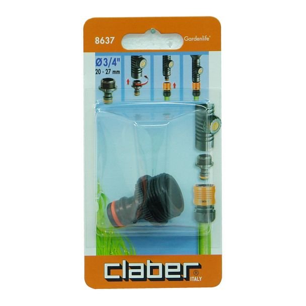 Conector Claber 86370000, 3/4″ este un conector pentru furtunuri cu filet standard 3/4″, realizat din plastic rezistent la intemperii şi radiaţii UV şi prevăzut cu garnitură de etanşare integrată pentru montaj rapid şi fixare sigură, potrivit pentru irigare de grădină, sere şi sisteme de picurare, dar şi pentru utilizare pe autorulotă, barcă sau sisteme de back-up apă, compatibil cu majoritatea robineţilor şi accesoriilor de grădină.
