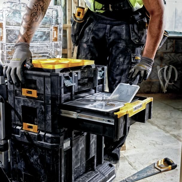 Cutie organizator cu 1 sertar Dewalt DWST1-70705, TSTAK III, 430 x 315 x 180 mm, 9 L este o soluție compactă și robustă pentru păstrarea sculelor mici și a accesoriilor, cu 1 sertar pentru acces rapid, compatibilă cu sistemul modular TSTAK III pentru stivuire sigură, construcție durabilă pentru utilizare pe șantier și acasă, capacitate utilă 9 L și dimensiuni 430 x 315 x 180 mm, ideală pentru organizare în proiecte electrice, instalații solare, autorulotă, barcă sau kituri de backup.