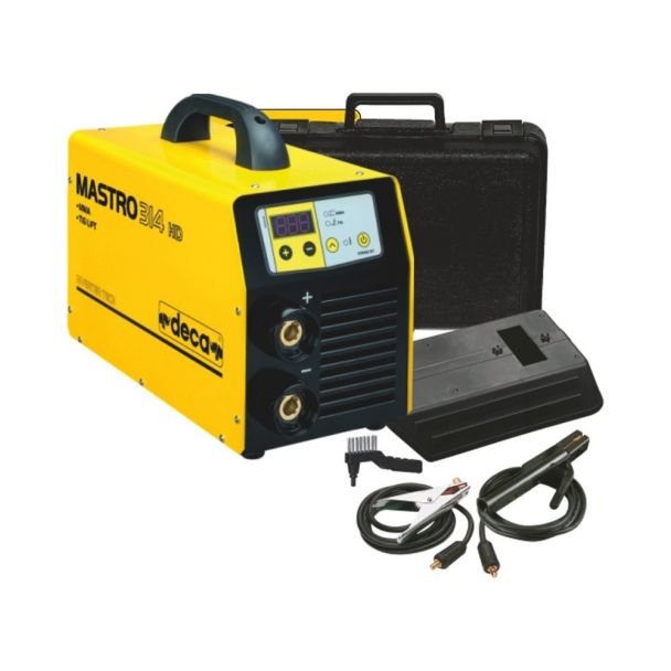 DECA MASTRO 314 HD ACC – invertor MMA (DC) cu domeniu 10–150 A, electrozi Ø1,6-3,2 mm, tehnologie inverter avansată, carcasă portabilă. Accesorii incluse – gata de lucru în atelier.
