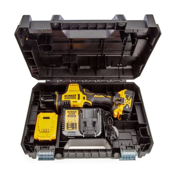 Fierăstrău tip sabie DeWalt DCS369P2, cursă 16 mm, 0-2800 curse/min, 2x acumulatori XR 18V 5.0Ah + încărcător în valiză TSTAK,
