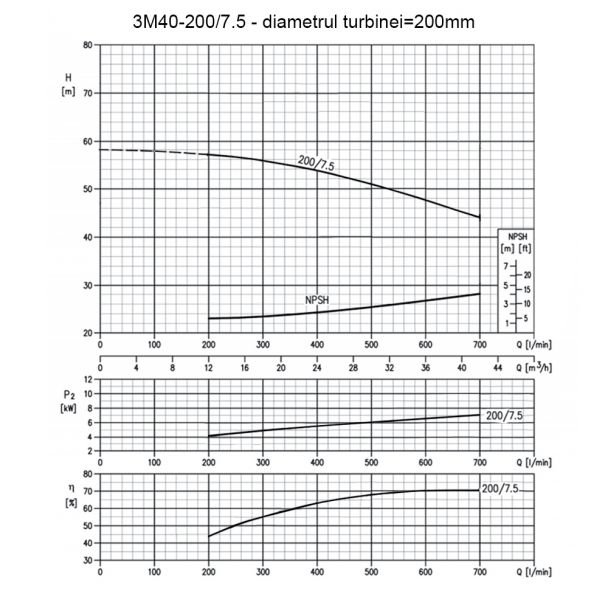 - Performanță ridicată – combină 7.5 kW cu un debit maxim de 42 m3/h și o înălțime de refulare de 58 m, asigurând productivitate și presiune pentru aplicații variate.