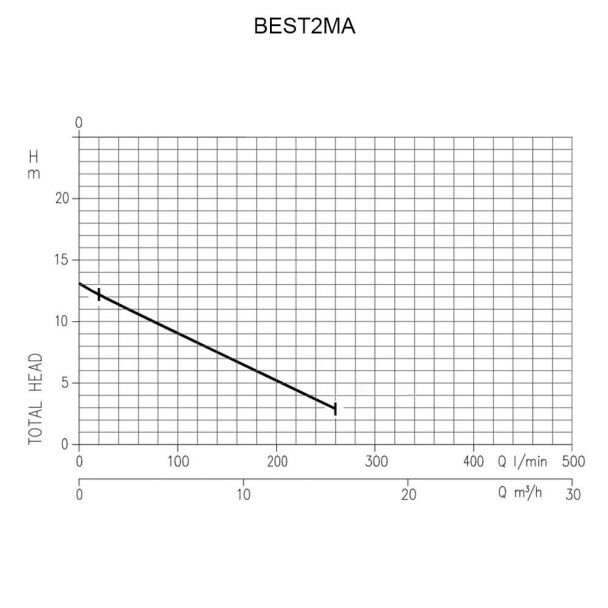 Pompa funcționează la 230 V și oferă un debit nominal de 12000 l/h cu o înălțime maximă de refulare de 12.2 m, ceea ce permite evacuarea rapidă a volumelor mari de apă. Poate transmite particule solide de până la 10 mm, reducând riscul blocărilor în aplicațiile cu apă murdară.