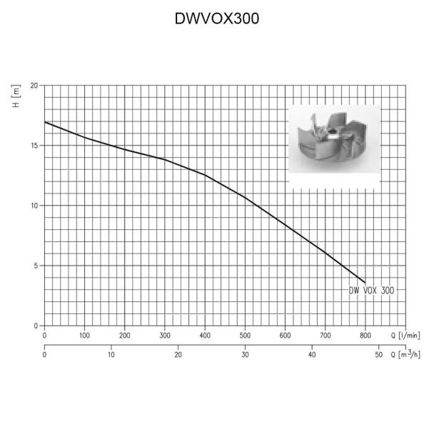 Pompă submersibilă inox pentru ape murdare EBARA DWVOX300 — 42.000 l/h, 400 V, refulare 15,7 m, particule max. 50 mm,