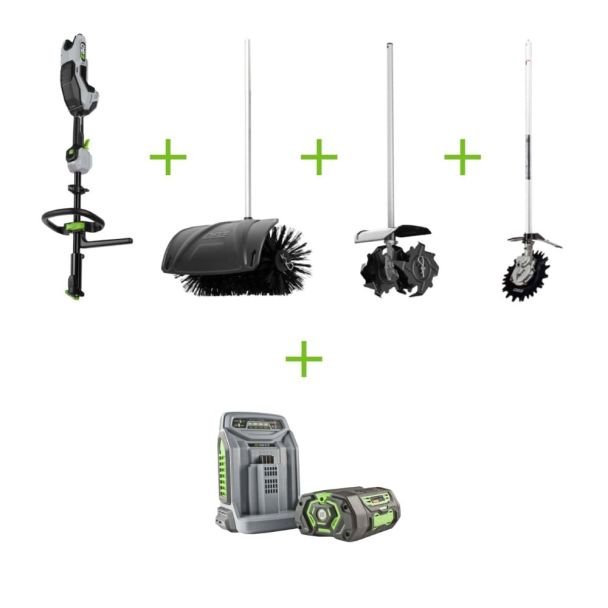 Set multifuncțional Ego Power MRC2306E cu ansamblu motor, perie rotativă, cap tăiere cu 2 cuțite, cultivator, încărcător rapid și 2 acumulatori Li-Ion 4.0 Ah,