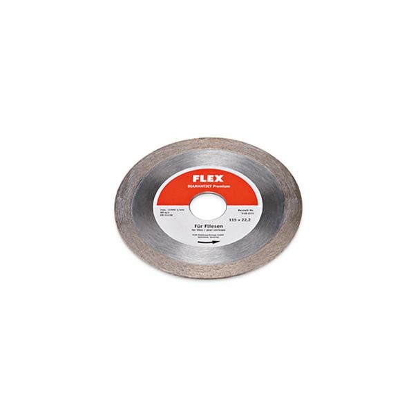 Disc diamantat pentru scule abrazive, din gama Diamantjet, cod Flex 349011, proiectat special pentru tăierea ceramicii. Dimensiunea importantă este 115 x 22.2 mm, ceea ce îl face compatibil cu polizoarele unghiulare și mașinile de tăiat având arbor cu diametrul de 22.2 mm.
