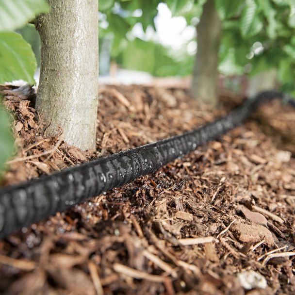 - Irigare uniformă – emisii regulate pe toată lungimea furtunului pentru menţinerea umezelii în zona rădăcinilor fără puncte de supra- sau sub-udare.