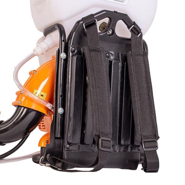 Motorul are o putere nominală de 2.9 CP, ceea ce asigură generarea debitului și presiunii necesare pentru atomizare eficientă în aplicații fitosanitare și de dezinsecție. Construcția tipică a acestui tip de atomizor pune accent pe portabilitate și acces rapid la reumplere/întreținere, iar volumul de 14 l asigură mai puține întreruperi pentru reumplere în timpul operațiunilor de teren.