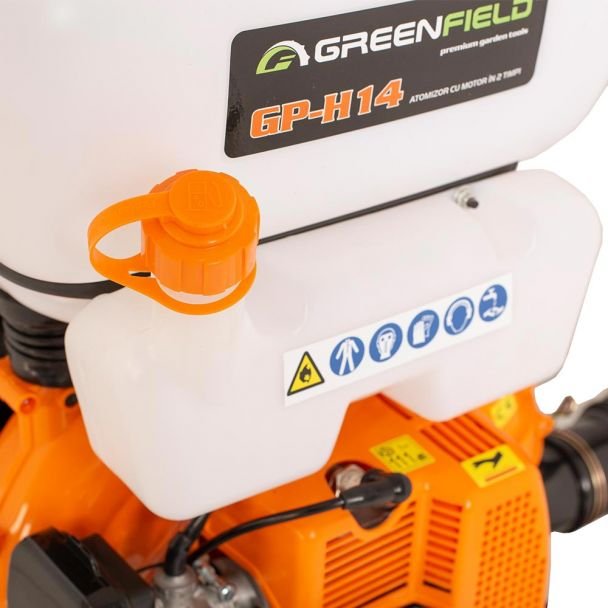 Greenfield, Atomizor Greenfield GP-H14 | Motor 2.9 CP, 41.5 cm³ | Rezervor 14 L | Pulverizator profesional pentru grădină și livezi | Performanță și fiabilitate