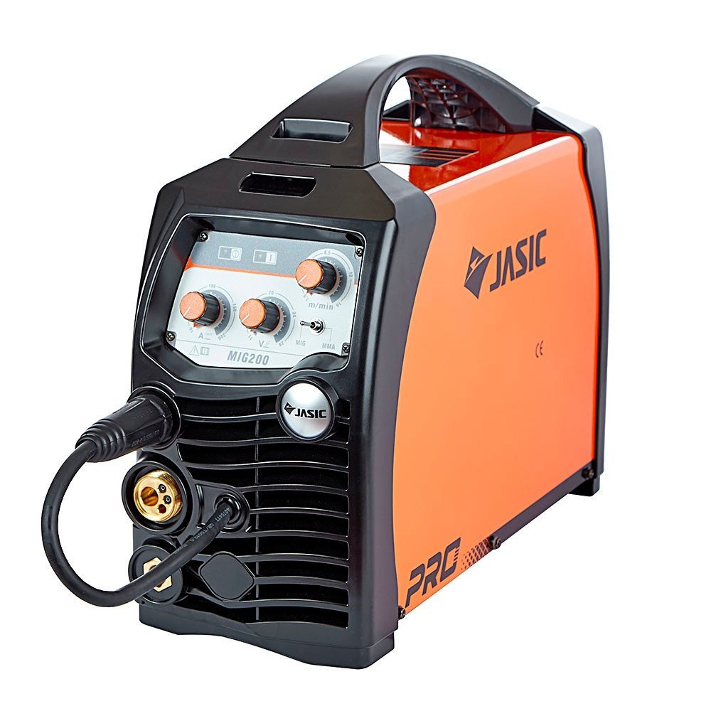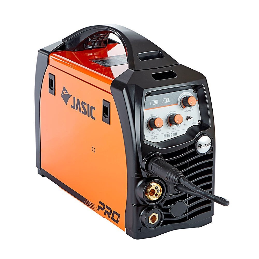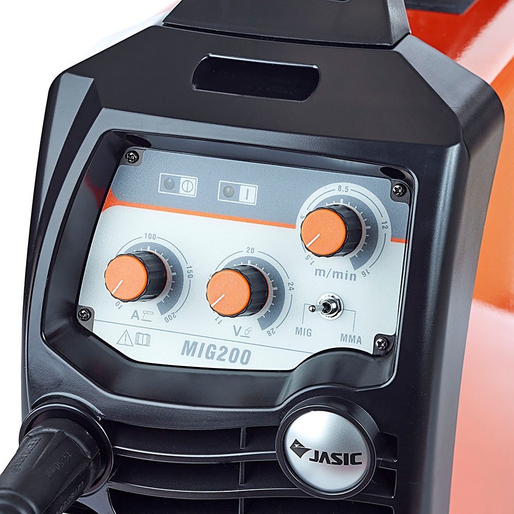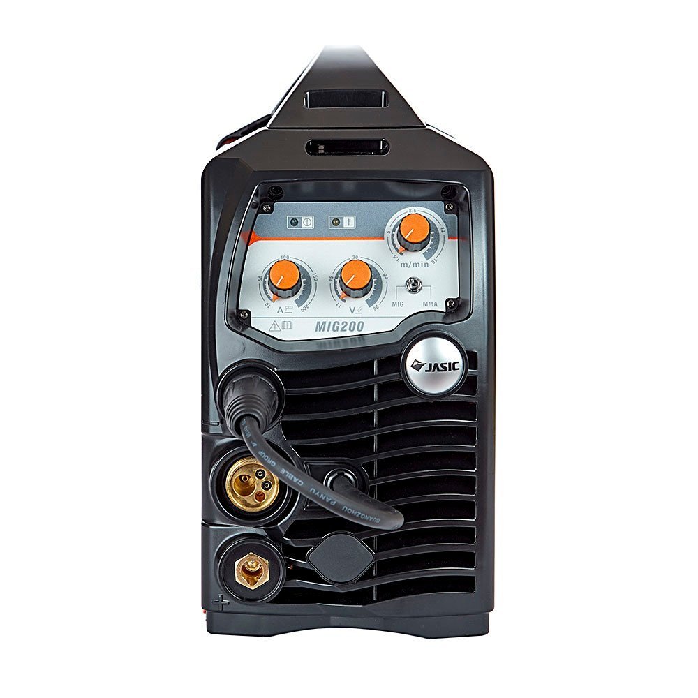 JASIC MIG 200 (N220) eate un aparat de sudura multiproces MIG MAG GAS-NO GAS / MMA , recomandat pentru sudura in mediu protector a oricarui tip de material, echipat cu componente IGBT puternice, pentru performate si suduri excelente. Invertorul ofera 200 de amperi la 35%/40 grade C / ciclu de sudura , fiind o alegere excelenta pentru mentenanta, lucrari de santier si confectie metalica. – Sudeaza MIG MAG ( cu sarma de sudura in mediu protejat ARGON sau CORGON) , fara gaz cu sarma flux si MMA ( cu electrod invelit) – Reglaj fin al curentului de sudura au ajutorul potentiometrului . – Reglaj viteza sarma si tensiune de sudare pentru functia MIG MAG – Reglaj timp ardere Burn back – Fiabile si robuste, usor de intretinut. – Protectie termica cu termostat. – Potrivit pentru sarma cu diametrul maxim de 200mm ( max 5 kg )