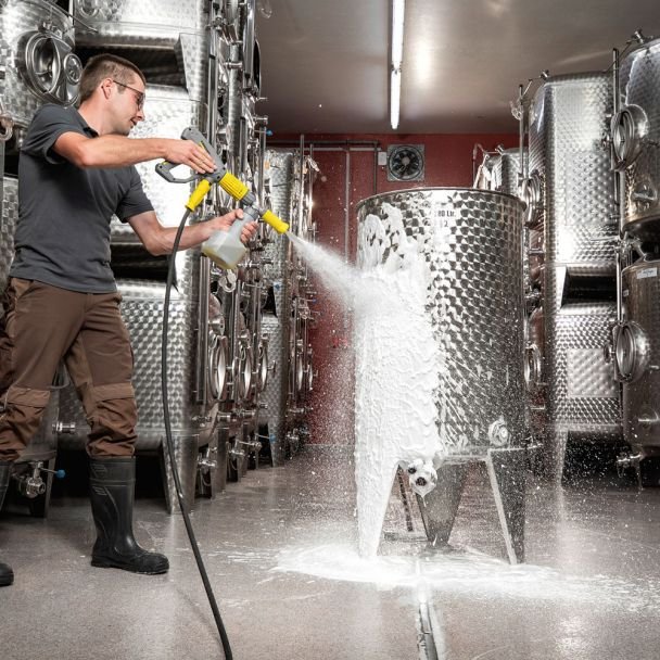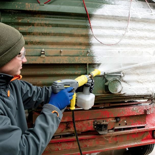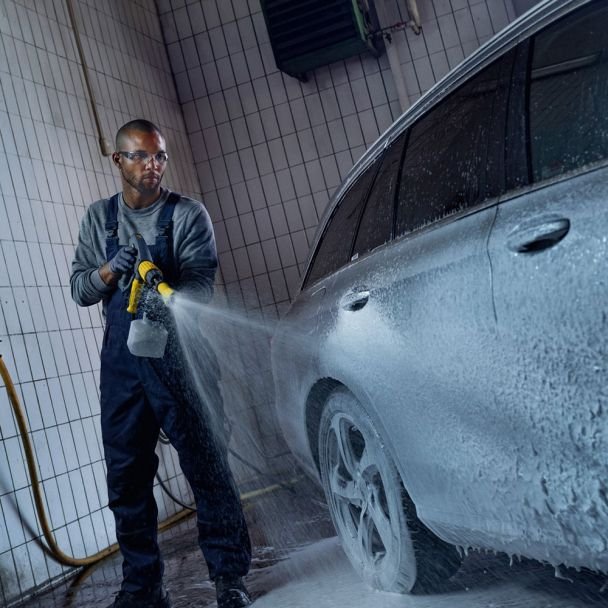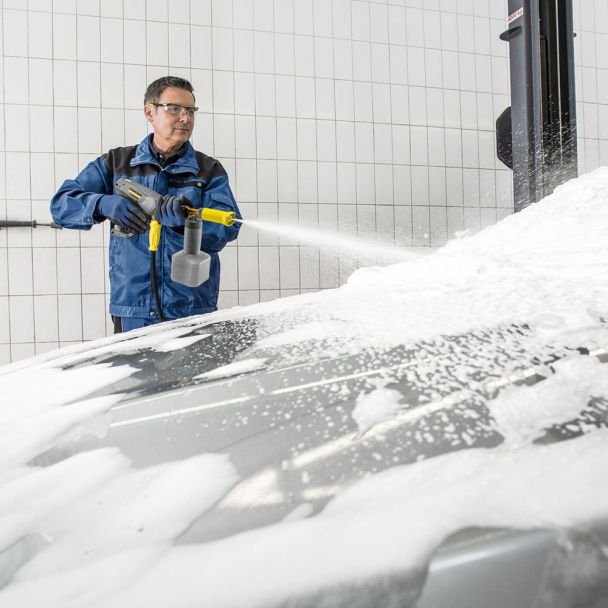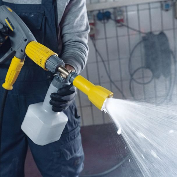 Este proiectată pentru aplicarea uniformă a spumei pe vehicule, fațade, echipamente industriale și suprafețe exterioare, oferind posibilitatea de a intensifica acțiunea detergenților și de a reduce timpul de frecare manuală. Montajul este realizat simplu pe pistolul aparatului, iar designul asigură dozare reglabilă a concentrației de spumă, eficientizare a consumului de detergent și o aplicare precisă pe suprafețe variate.