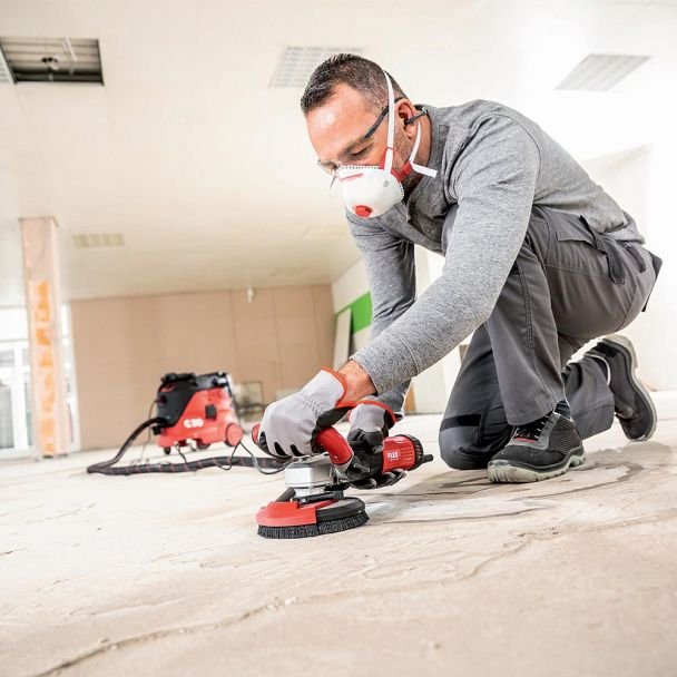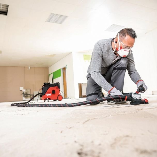 Aceasta masina este echipata cu un motor de inalta performanta de 1600 watt, care asigura rezerve suficiente de putere. Dispune de control electronic constant al turatiei, pornire usoara, protectie la suprasarcina si monitorizare a temperaturii pentru siguranta si durabilitate. Sistemul de extragere a prafului reduce uzura discului si mentine porii betonului deschisi pentru o noua acoperire optima. Functia anti-kickback opreste motorul in cazul blocarii discului, iar protectia cu segment pivotant permite slefuirea pana la perete, fiind reglabila pe inaltime pentru o aspirare optima a prafului. Manerul ergonomic, rezistent la vibratii si reglabil fara trepte, asigura manevrare optima si control maxim al masinii. Pentru conectarea rapida a furtunului, masina este prevazuta cu o conexiune cu clips flex Ø 32 mm, inclusa in echipamentul standard. Blocarea axului este incastrata pentru a evita activarea neintentionata.