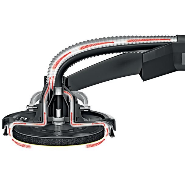 Aceasta masina dispune de un motor puternic de 500 W si ofera o turatie variabila intre 1100-1650 rpm, asigurand o viteza constanta de lucru. Este echipata cu functia Soft start pentru o pornire usoara si protectie a componentelor, iar designul ergonomic si echilibrul optim intre motor si capul de slefuire faciliteaza manevrarea si reduce oboseala utilizatorului. Capul de slefuire flexibil permite reglarea optima in functie de suprafata, iar sistemul eficient de extragere a prafului previne infundarea si mentine un mediu de lucru curat.
