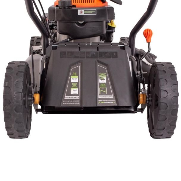• Productivitate și controllățime de lucru 46 cm combinată cu 7 trepte de tăiere și sac colector 50 l permit lucrul eficient pe suprafețe medii, cu reglaje rapide ale înălțimii și colectare a resturilor.