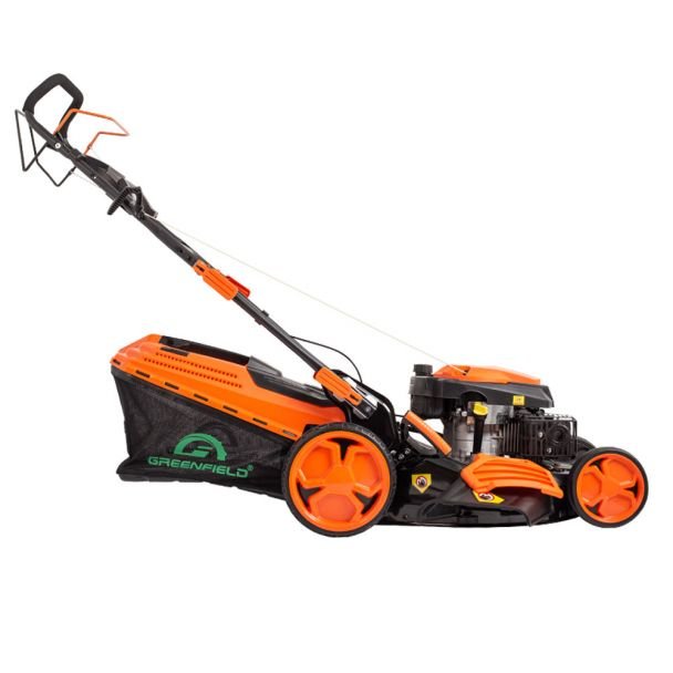 Mașina de tuns gazon pe benzină Greenfield G-MTG532ARW-T8 este un utilaj din clasa mașinilor autotractate/manuale pentru întreținere gazon rezidențial și suprafețe verzi de dimensiuni medii. Este alimentată cu combustibil convențional, concepută pentru tăieri eficiente prin combinarea unei puteri de 4,4 CP cu o cilindree de 173 cm³, ceea ce îi conferă capacitatea de a face față ierbii dese și condițiilor de lucru obișnuite în grădină.