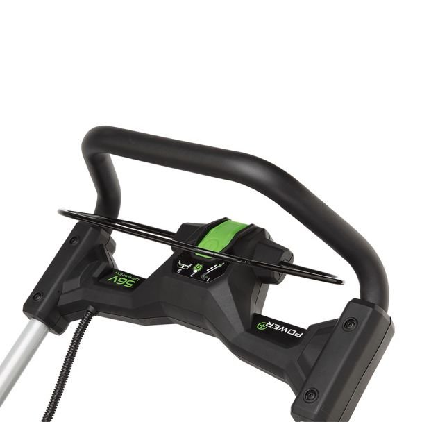 - Alimentare pe acumulator 56 V – oferă performanță electrică potrivită pentru tăierea gazonului fără emisii directe și cabluri de alimentare.