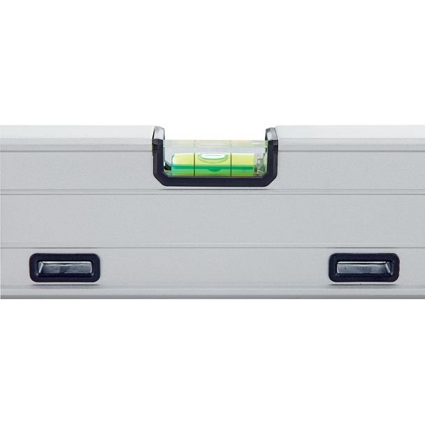 Acest model dispune de afișaje digitale duale, amplasate frontal și pe partea superioară, care permit citirea exactă a măsurătorilor la 360 de grade. Funcțiile avansate includ rotire automată a afișajului, iluminare reglabilă pentru vizibilitate optimă în orice condiții, unități de măsură comutabile (grade, inch, picioare sau procent), precum și proiecție precisă a înclinației pe distanțe mari. Nivela are funcție de menținere a valorii măsurate și se oprește automat după 10 minute pentru economisirea bateriei. Carcasa robustă este rezistentă la apă și praf, având clasa de protecție IP65, iar magnetii puternici asigură fixarea stabilă pe suprafețe metalice. Capacele de capăt sunt detașabile pentru o utilizare facilă.