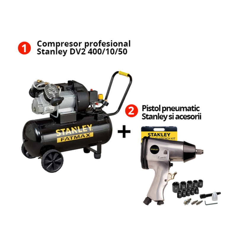 Pachet Stanley Fatmax: Compresor Profesional DV2 400/10/50 Si Pistol Pneumatic 160157XSTN