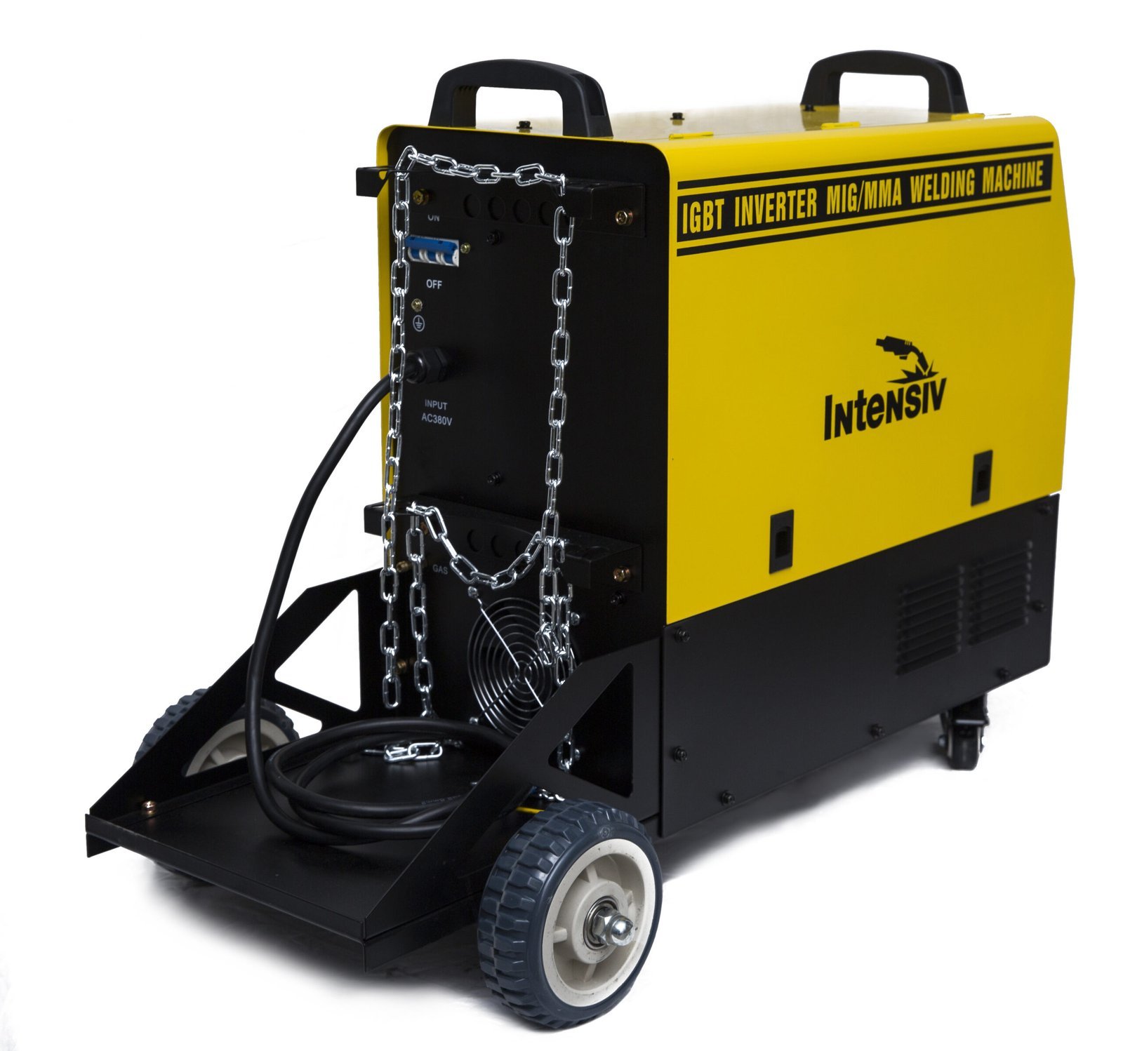 Aparatul de sudura MIG-MAG/MMA – Intensiv PERFEKT MIG 315 SYNERGIC (380V) PROFESIONAL este un aparat tip invertor, echipat cu tranzistoare IGBT puternice, pentru performate si suduri excelente; este recomandat atat pentru sudura in mediu de gaz protector, cu sarma plina, a oricarui tip de material, cat si pentru sudura fara gaz, cu sarma FLUX ( NO GAS ) .