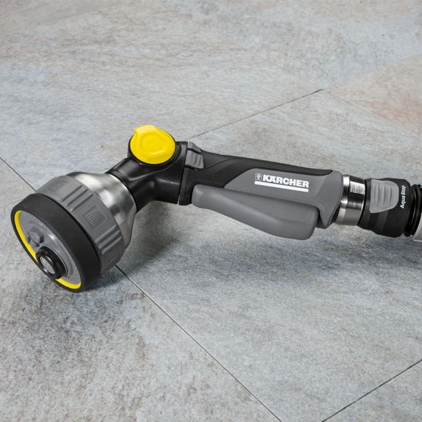 - Funcționalitate adaptabilă – pistol multifuncțional pentru stropit, oferind control al debitului și compatibilitate cu lance/furtunuri Karcher pentru utilizări variate.
