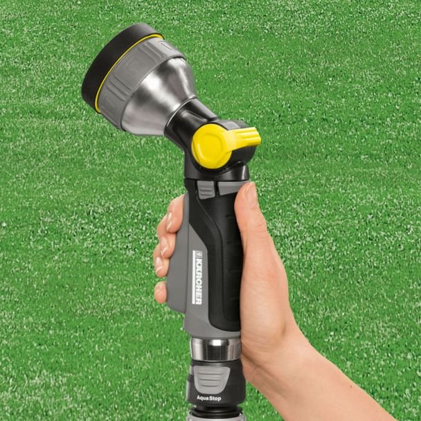 Pistol metalic multifuncțional pentru stropit, proiectat ca accesoriu de înaltă rezistență pentru sisteme de spălare și stropire marca Karcher. Se încadrează în categoria dispozitivelor de distribuție lichide pentru aplicații de curățare, grădinărit și întreținere tehnică, destinat utilizării atât în medii profesionale, cât și în aplicații casnice care necesită un control precis al pulverizării.