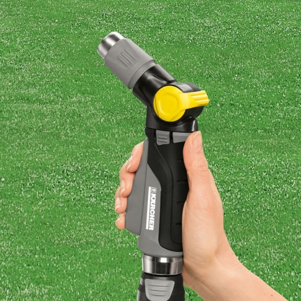 Pistol metalicl pentru stropit Premium Karcher 2.645-270.0, echipat cu corp metalic durabil, mâner ergonomic cu blocare pentru utilizare continuă, jet reglabil de la pulverizare fină la jet concentrat, sistem anti-picurare pentru economie de apă, compatibil cu racorduri standard de grădină, ideal pentru solar, autorulotă, barcă, spălare auto și aplicații de backup pentru curățenie și întreținere.