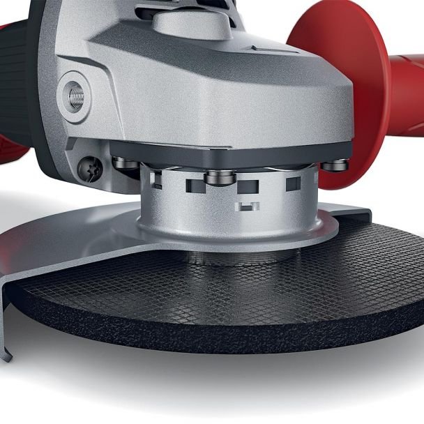 Acest polizor este echipat cu un motor brushless care asigură o eficiență superioară și o durată de viață extinsă. Microprocesorul integrat oferă pornire ușoară, protecție la repornire după întreruperea alimentării, monitorizare a temperaturii și protecție la suprasarcină, toate acestea contribuind la siguranța și fiabilitatea uneltei. Funcția anti-kickback oprește motorul în cazul blocării discului, iar grila metalică detașabilă protejează motorul de praf. Manerul lateral înclinat și secțiunea simplificată a mânerului oferă o manevrabilitate excelentă, iar reglarea fără scule a apărătorii și blocarea axului sporesc confortul în utilizare.