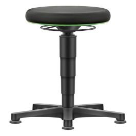 Oferă un șezut foarte mare Ø 400 mm pentru confort pe perioade scurte, o bază din plastic Ø 540 mm compactă care economisește spațiu și reglare rapidă a înălțimii prin deblocare practică a arcului cu gaz. Elemente de protecție și întreținere: inel verde pentru protejarea tapițeriei, îmbinare joasă ușor de curățat și dezinfectat, suprafața scaunului echipată cu glisante pentru podea și tapițerie din material textil respirabil, confortabil și moale. Suport flexibil opțional, reglabil pe înălțime pentru adaptare la cerințe specifice de lucru.