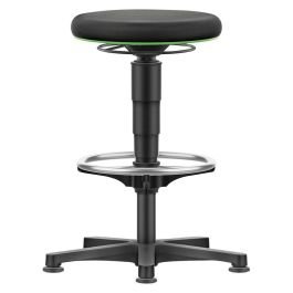 Conceput cu accent pe stabilitate și întreținere facilă, oferă un scaun foarte mare Ø 400 mm pe o bază din plastic Ø 540 mm care economisește spațiu. Reglarea înălțimii se realizează printr-un mecanism cu arc cu gaz pentru ajustare rapidă, iar inelul verde protejează tapițeria. Îmbinările sunt joase, ușor de curățat și dezinfectat, iar tapițeria este din material textil respirabil, confortabil și moale. Opțional se poate monta un suport flexibil reglabil pe înălțime, iar produsul include glisoare de podea și un inel pentru picioare cromat reglabil pe înălțime.