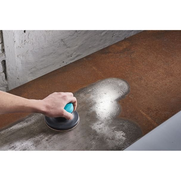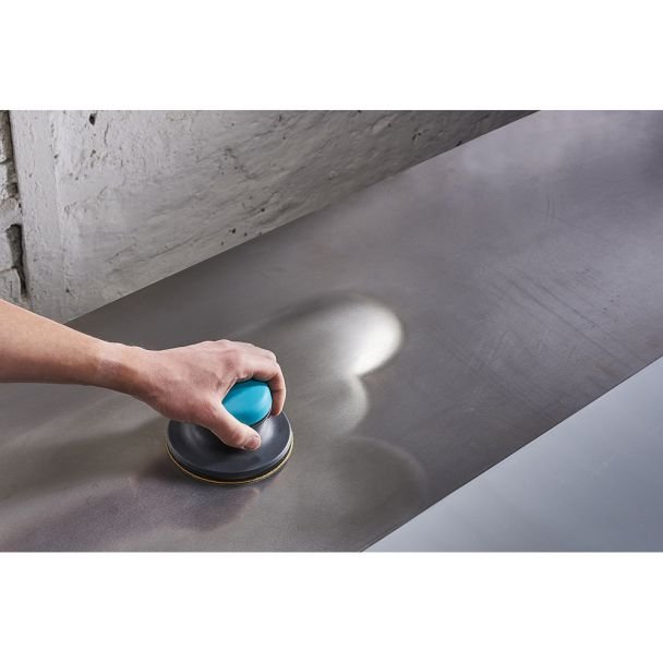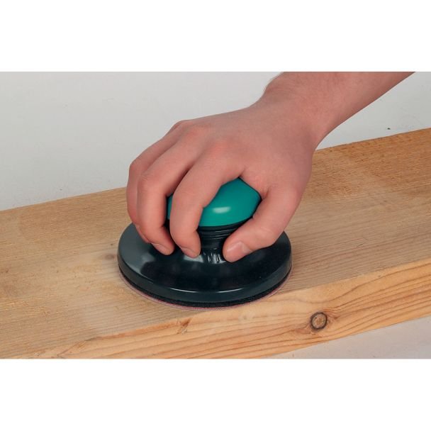 Construcția cu mâner bicomponent oferă prindere antialunecare şi confort în utilizare prelungită, iar sistemul de prindere cu scai permite fixarea rapidă și sigură a hârtiei abrazive. Lungimea de lucru efectivă este de 125 mm, ceea ce îl recomandă pentru suprafețe plate și piese de dimensiuni medii, oferind stabilitate și ușurință la schimbarea consumabilului.