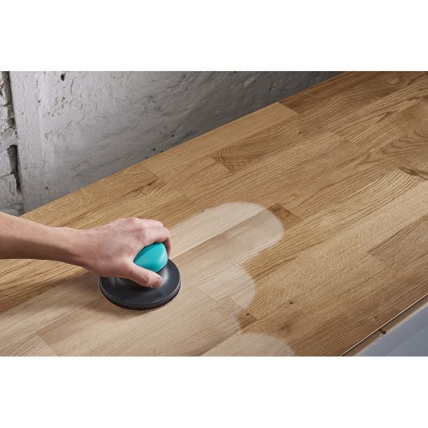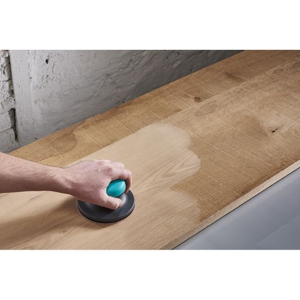 Slefuitor manual Wolfcraft 5894000, maner bicomponent, 125 mm, cu scai: mâner bicomponent ergonomic pentru confort și control, corp compact 125 mm pentru lucrări în spații înguste, prindere rapidă cu scai pentru schimbarea ușoară a hârtiei abrazive, potrivit pentru șlefuiri fine și pregătirea suprafețelor din lemn, metal și vopsele, ideal pentru proiecte de bricolaj, reparații la autorulotă, barcă sau solar și ca unealtă de backup în atelier.