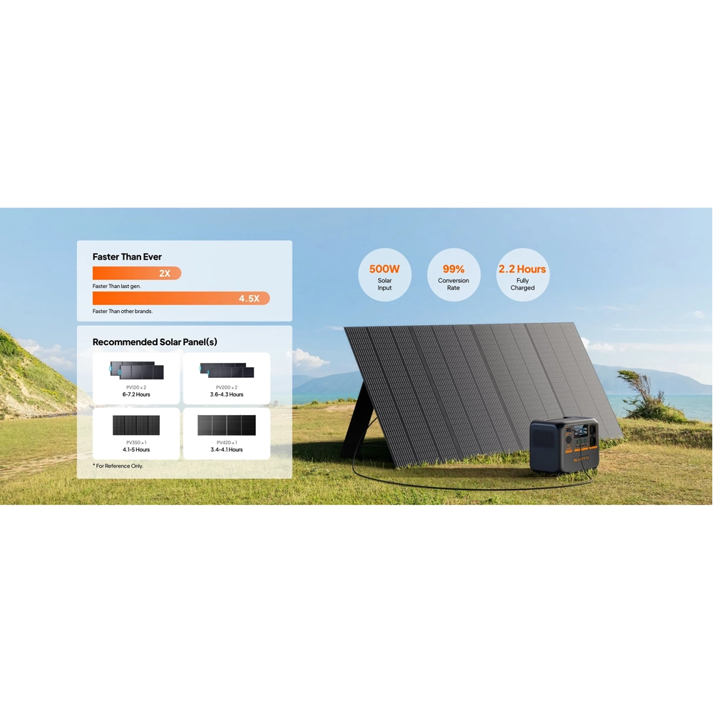 Încărcare ultra-rapidă AC și compatibilitate cu panouri solare până la 500 W.