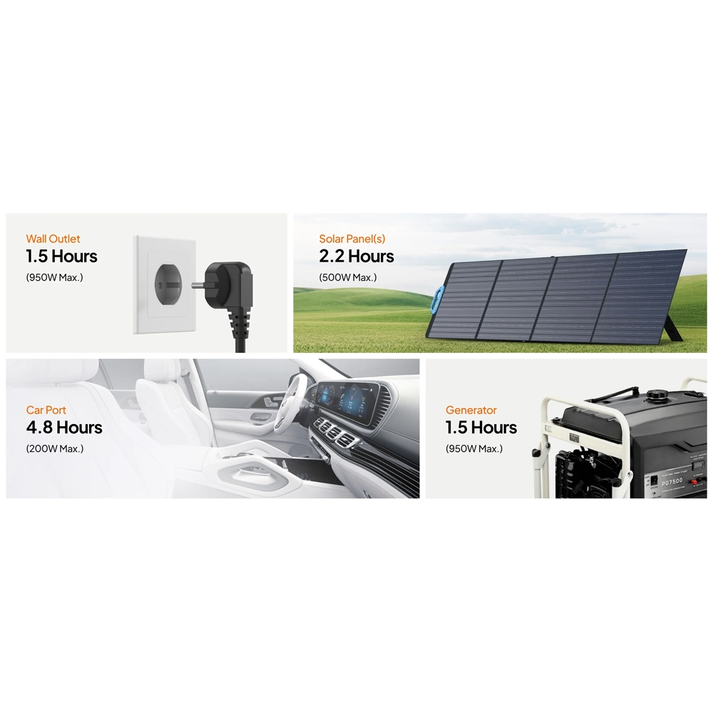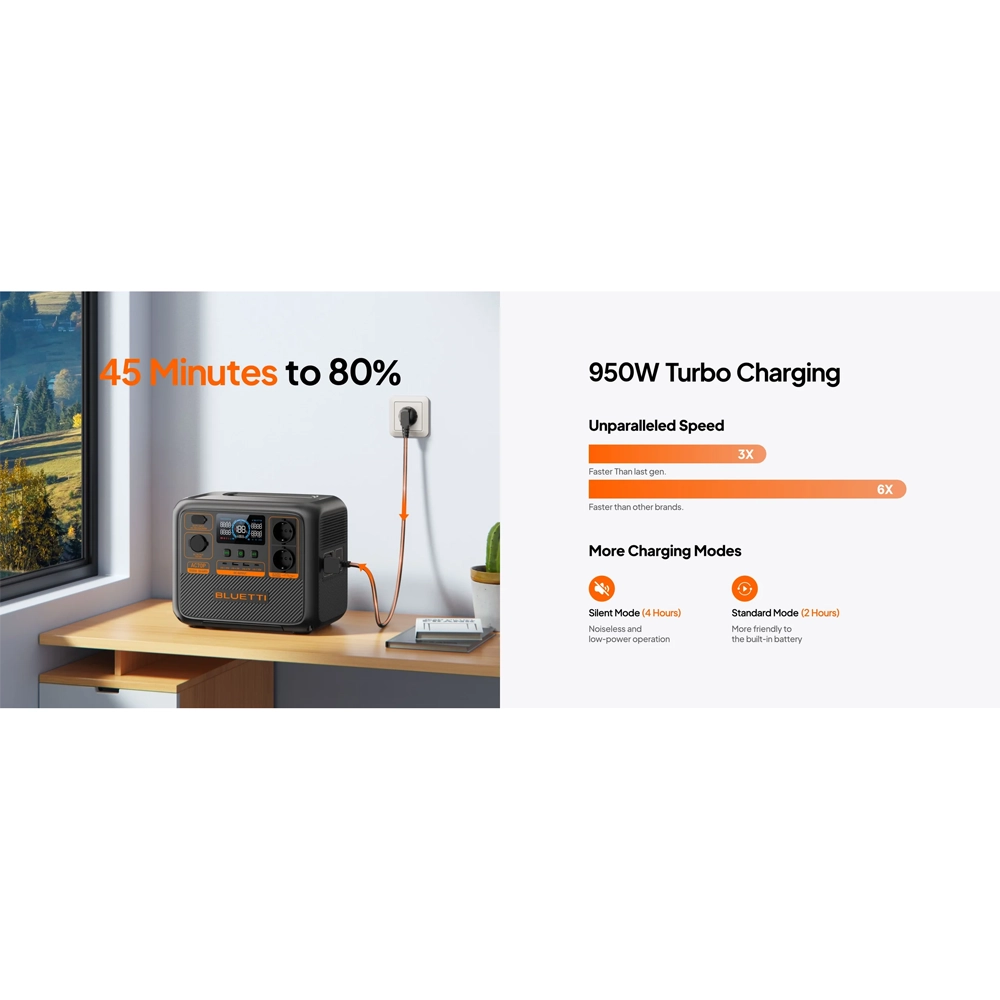 Încărcare ultra-rapidă: suportă până la 850 W prin priză AC, încărcând 0–80% în aproximativ 45 de minute.