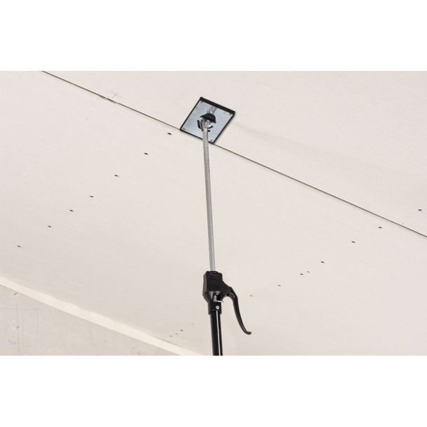 Aplicabil în lucrări de montaj plăci gips‑carton, finisaje de tavan, prindere temporară a profilelor sau poziţionare de obiecte uşoare, suportul oferă o înălţime reglabilă cu înălţime maximă de 2,9 m şi o capacitate de susţinere de până la 30 kg, ceea ce permite folosirea sa în operaţiuni de fixare şi aliniere economice şi rapide. Construcţia telescopică asigură reglaj fin al înălţimii şi stabilitate în poziţie, reducând necesitatea schelelor pentru operaţiuni temporare şi facilitând lucrul cu o mobilitate sporită.