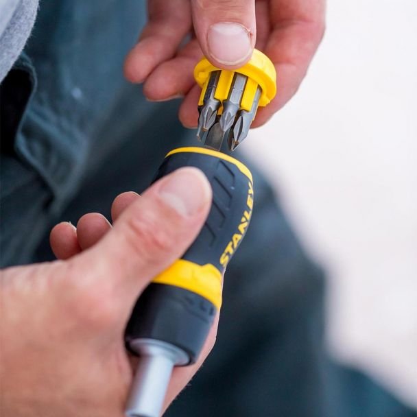 Șurubelnița de tip stubby cu clichet și 7 biți Stanley 0-66-358 este un instrument compact destinat intervențiilor în spații restrânse unde o șurubelniță standard nu poate fi manevrată eficient. Produsul combină ergonomia unui mâner scurt cu un mecanism de clichet integrat, permițând rotații repetate fără repoziționare completă.