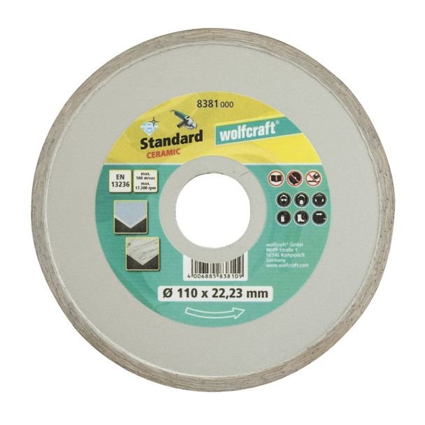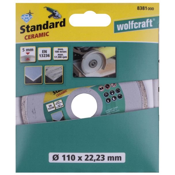 Disc diamantat | Wolfcraft 8381000 | Standard Ceramic | Pentru ceramică | D 110 x 22.2 x 5 mm,